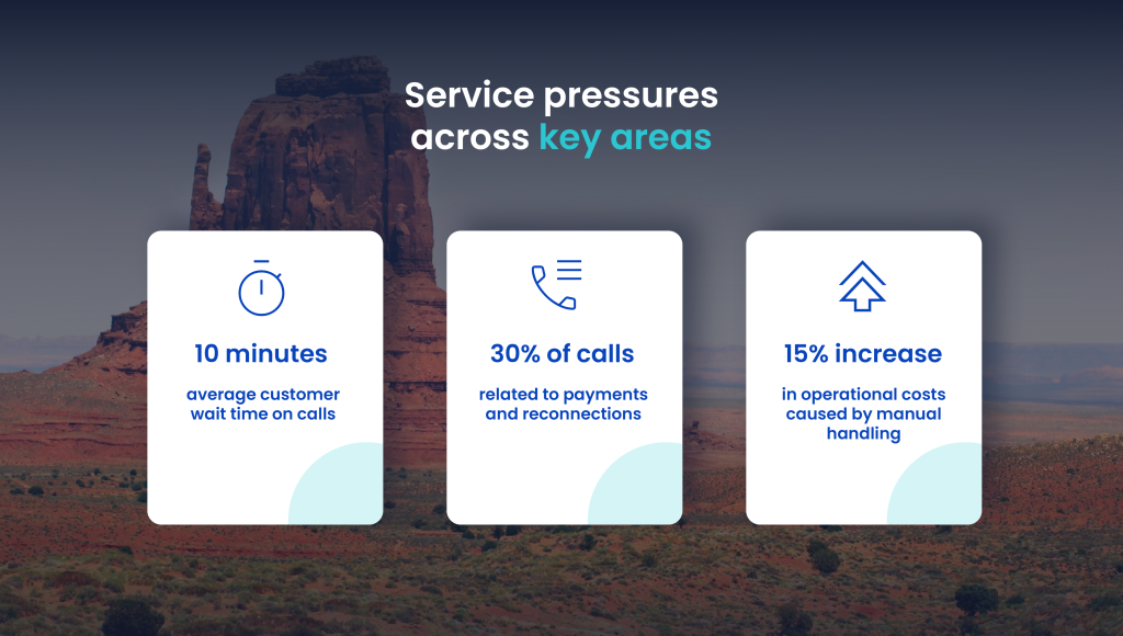 Customers faced steady friction across basic interactions. For a customer base largely composed of elders, the physical distance to offices was a significant barrier. Call volumes rose as families sought help with payments, usage information, and service needs. Employees relied on old paper systems and manual steps that limited visibility and created pressure across the contact center.
