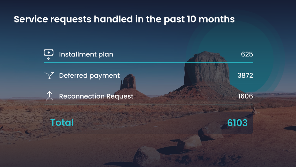 Building on early success, NTUA focused on moments that consistently pulled customers back into long calls and in-person visits. Installment plans, payment deferrals, and reconnection requests carried urgency and stress, especially for families managing tight timelines and long distances. These requests needed clarity, speed, and reassurance. Through MiCustomer, NTUA introduced guided digital pathways that allowed customers to complete each step on their own terms. Automated flows, clear instructions, and third-party integrations reduced uncertainty, while a structured work queue ensured requests needing manual review were handled with care.